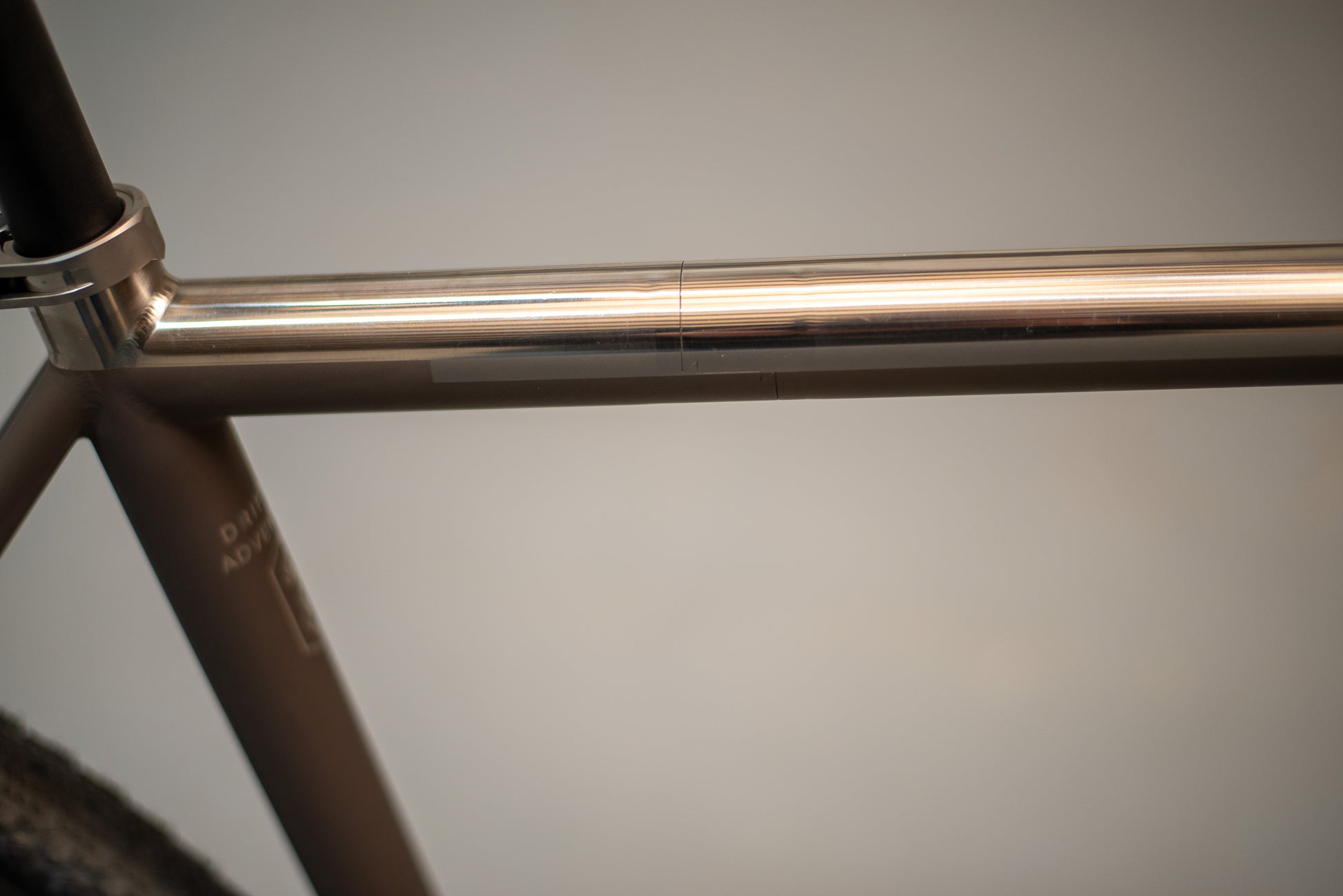 This frame was built with custom geometry designed to account for the suspension fork while maintaining the fit points of our standard 58cm Drifter Adventure. It features a striking Midnight Bronze Cerakote and High Polish finish, with the suspension fork lowers Cerakoted to match. The build is travel-ready with titanium couplers and features a 2024 model year frame.