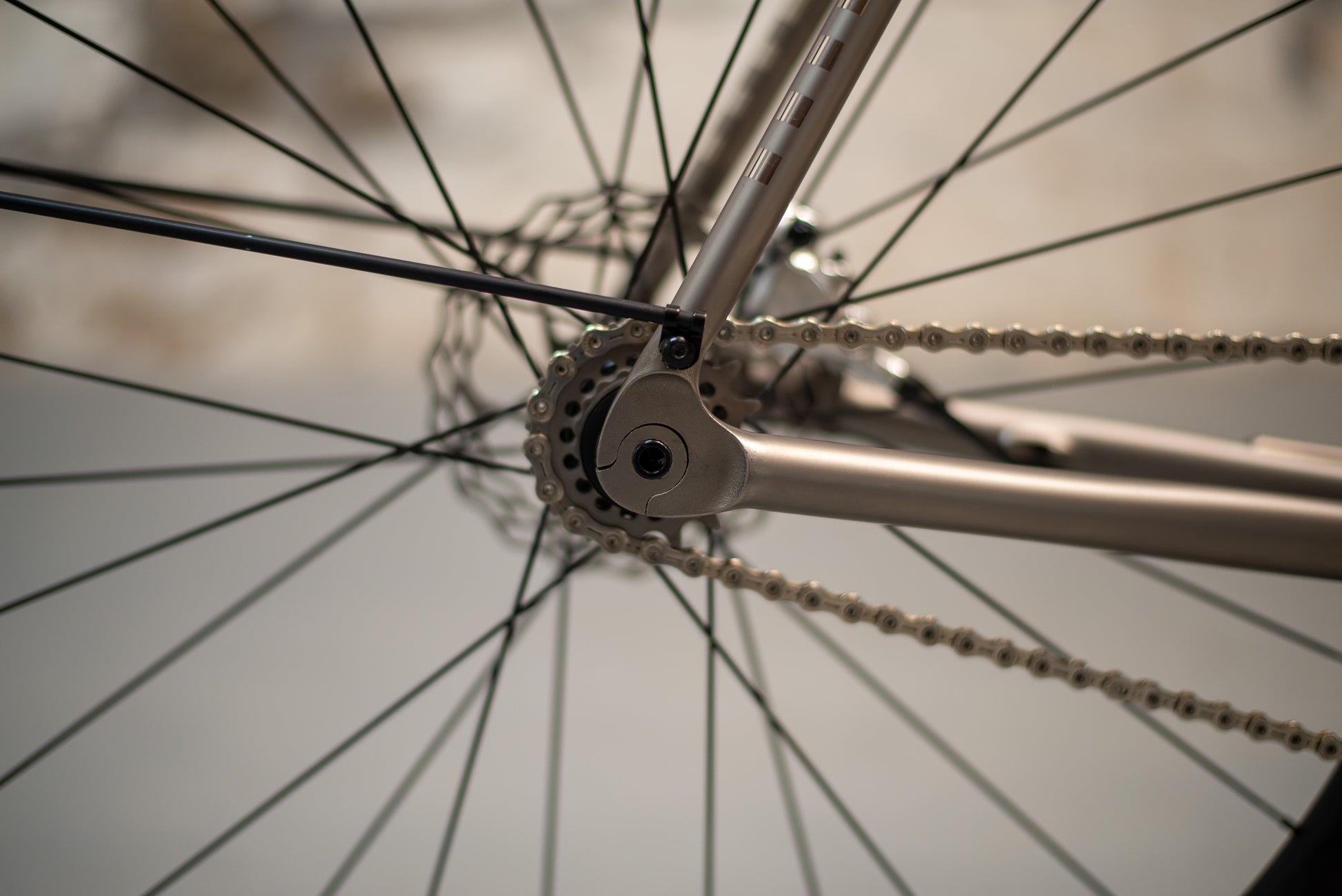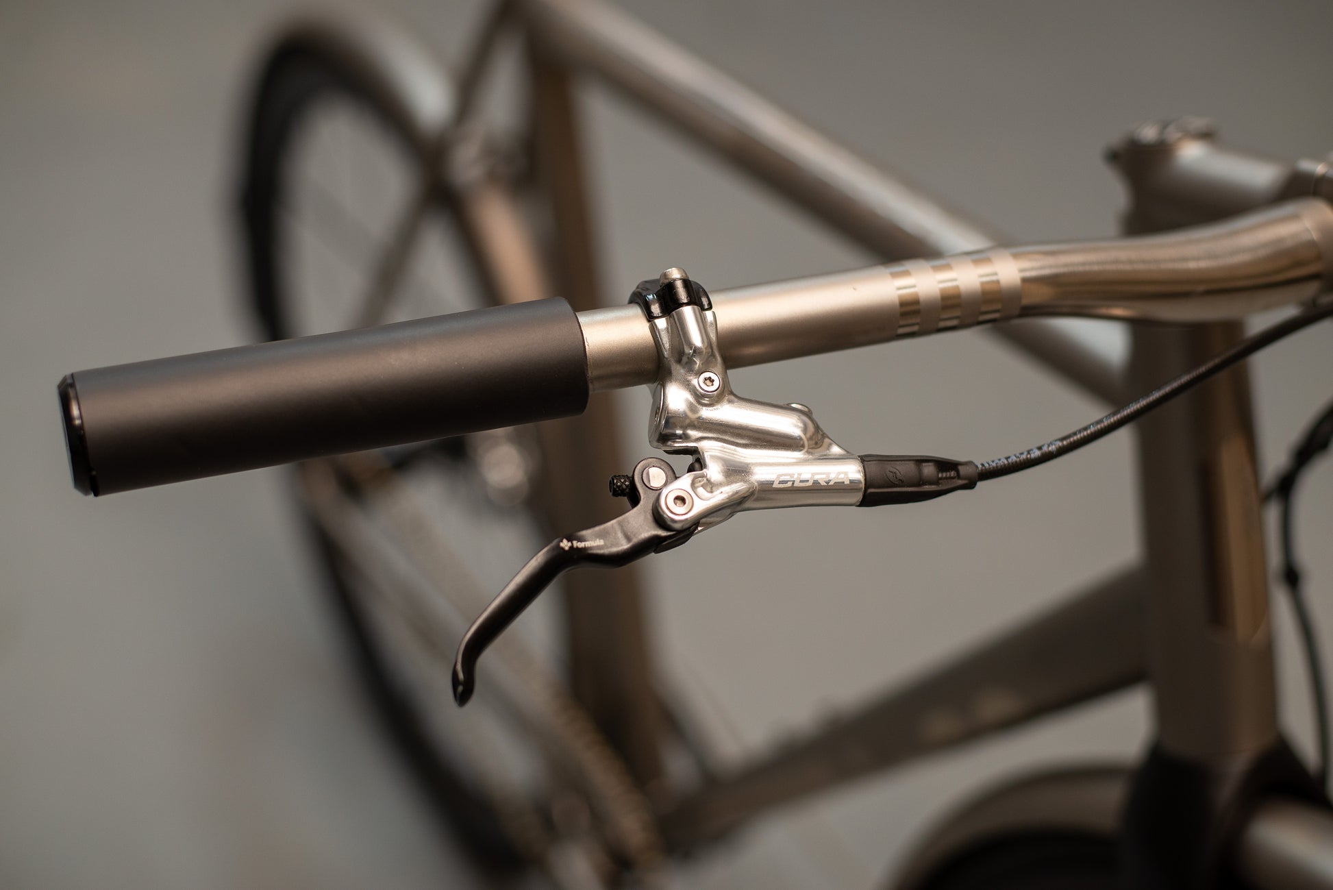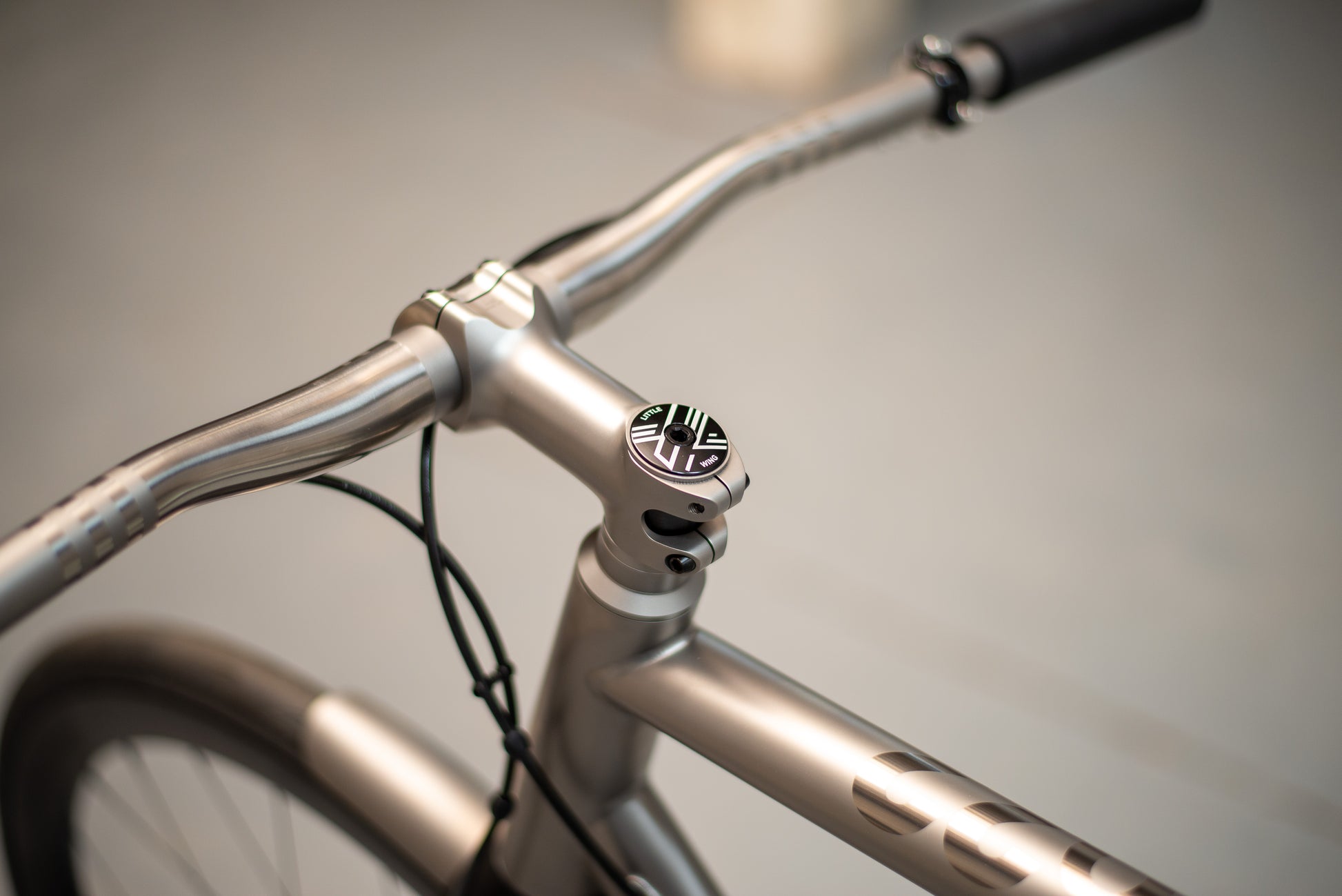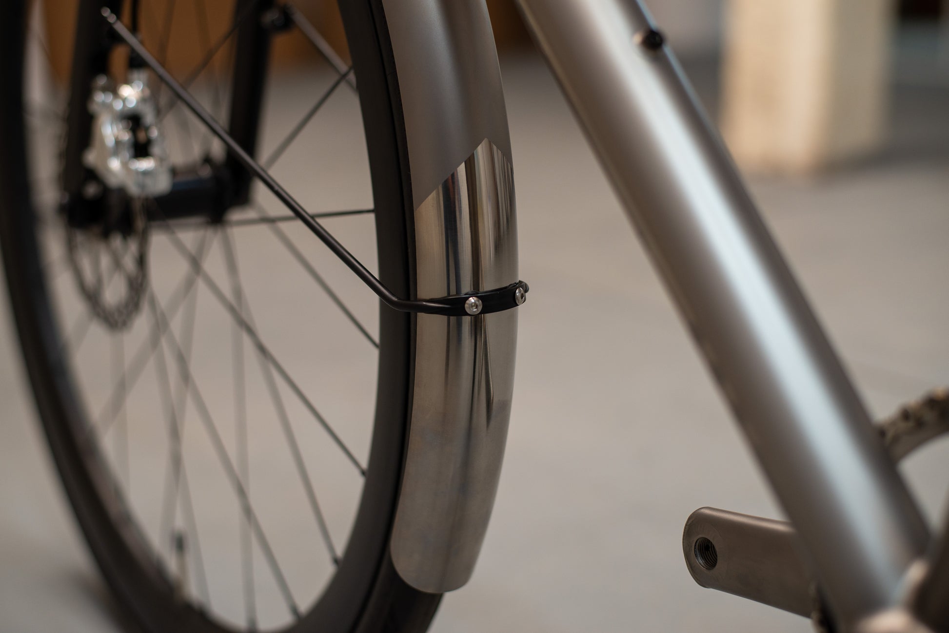 The frame is finished in our High Polish titanium finish and is paired with a number of bespoke components and custom touches. It features our titanium fenders, custom finished Thomson titanium flat handlebars, Cane Creek eeWings titanium cranks, and DWARD chainring, all finished to closely match the polished titanium frame. The result is a cohesive and striking build that highlights both craftsmanship and creativity.